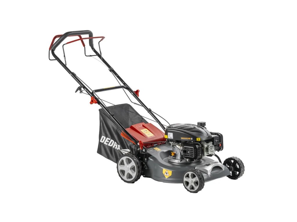 Benzínová sekačka DEDRA DED8720-43L se šířkou záběru 43 cm a jednorychlostním pojezdem.